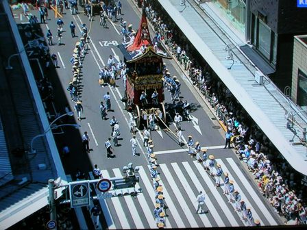 You can look down a busiest street of Kyoto from there. The name of that street is Shijo-dori street (四条通り, しじょうどおり). And that corner is almost center of Gion (祇園, ぎおん) area. In front of the gate way you will find Gion bus stop.